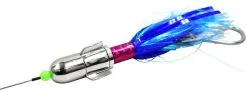 - Rigged with 150lb fluorocarbon leader and 10/0 Mustad hook