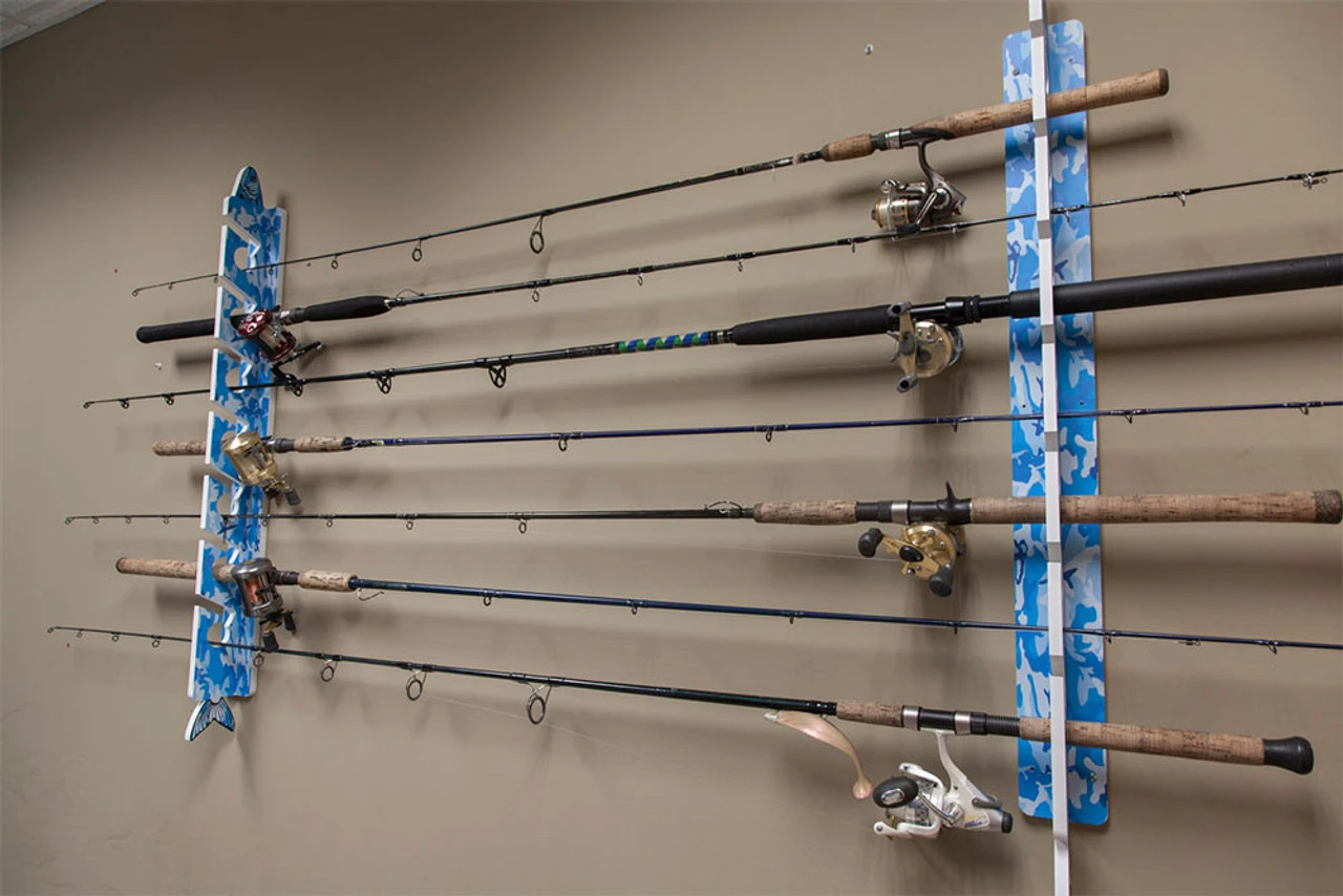 Big Daddy Fishing Rod Racks – 7 Rod Racks are an angler?s dream. These rod racks are 2 pieces and can accommodate up to 7 rod-and-reel combos. These rod racks are made from PVC, making them strong and durable. Made for safe storage and secure display. These rod racks allow for universal mounting; ideal for any room, garage or shed.