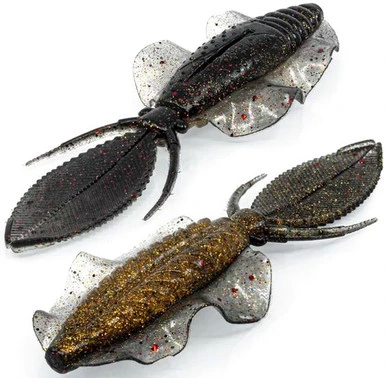 One of the more unique creature baits to hit the market in recent memory, the Chasebaits Flip Flop boasts a familiar profile with anatomical features that bass have certainly never seen before. Borrowing its body design from the success of the Chasebaits Ultimate Squid, the Flip Flop features a set of unique rolling hood wings that come alive on the drop. The hood wings ripple and flow as the bait falls, creating a mesmerizing action that your local bass are not used to seeing on a flipping bait. The splittable beaver tail and lifelike antennae glide and flicker for an effective crawfish imitation. With extra salt in the belly, the Flip Flop achieves excellent balance to maintain its posture on the bottom so it is sitting in prime strike position. These baits are double shrimp scented for maximum attraction, with scent both injected into the body and added externally. The Flip Flop does its best work when rigged on a flipping or punching rig, but also excels on a Carolina rig, Texas Rig, or as a jig trailer.