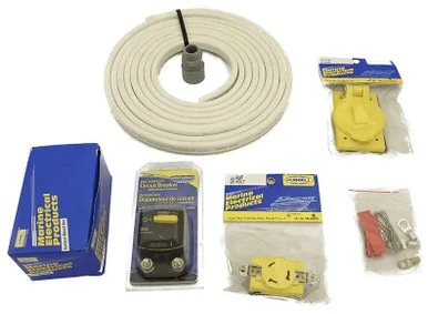 The Gemlux S-1200 Wiring, Receptacle, & Circuit Breaker Kit is a fully comprehensive wiring setup for your electric reels. The kit consists of 20 feet of 8 Gauge Duplex Marine Wire, (1) 30 amp Swing Arm Circuit Breaker, (1) Hubbell 328DCR receptacle, (1) Hubbell HBL74CM25 Receptacle Cover Plate, (1) Hubbell HBL6083 Box, (1) UFC0003CR Strain Relief, and Four Solder Lugs.