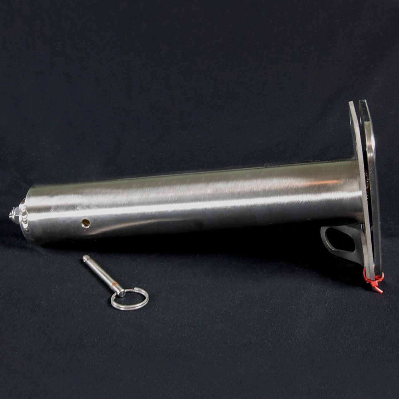 Constructed to withstand the demands of the heaviest offshore fishing applications, the Hooker Electric Flush Mount Rod Holders are a sturdy, functional, and dependable piece of hardware that is built to last. These rod holders feature a heavy duty 1/4″ thick, 4″ x 5″ top plate which is welded directly to the rod tube and will never break. The rod tubes are able to accommodate #2, #4, and #6 sized rod butts in gunnels up to 1-3/4″ thick, 11″ deep, with 2.125″ rod tubes. Each rod holder includes a 1/8″ thick stainless steel backing plate and safety line clip that can be positioned from any mounting bolt. Unlike any other rod holder on the market, these rod holders include a removable pin at 9″ deep on the rod tube. If you desire your rod holder to have a bar pin to fit a rod gimbal, simply insert the pin before installation, or leave it out if no bar pin is desired. Hooker Electric Flush Mount Rod Holders are available with fixed or swivel bases as well as 0 and 15 degree mounting angle options. Swivel based models feature and adjustable drag system that allows fisherman to adjust the amount of pressure necessary to rotate the rod in the holder.