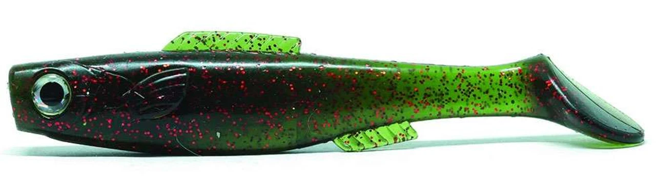 The Hyperlastic Minwaow is a paddtail swimbait that can catch fish in almost any condition. With its advanced paddle tail design, this lure creates a lot of turbulence and a lifelike kicking action. This action that this lure creates attracts predator fish from all directions. With a flat nose design rigging with jigheads is absolutely seamless. The Band of Anglers Minwaow has a “Spikes and Slots” keeper system molded into the hook path allowing for easy rigging and a secure hold. This lure comes with one Patrick Sebile designed jighead with a 3/0 hook and four Minwaow paddle tail bodies.