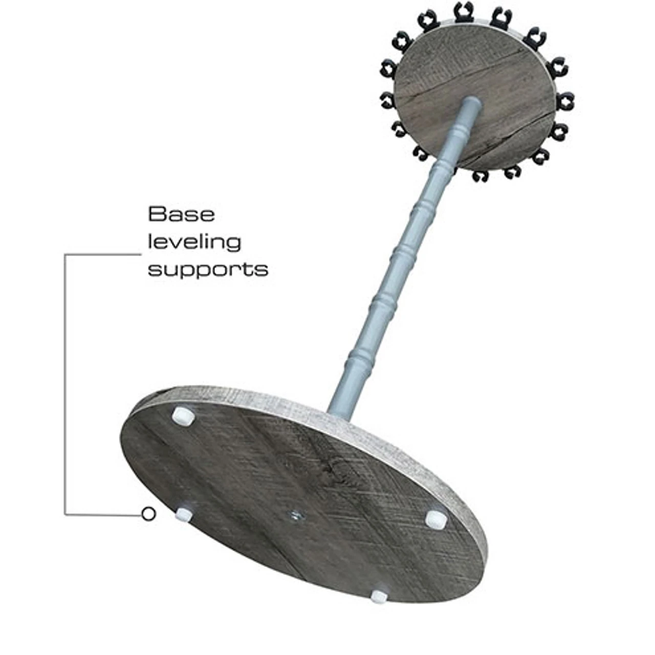 The Rush Creek Creations 16 Round Fishing Rod Storage Floor Rack is a unique one of a kind rod rack. Caps on the base plate are designed to pool water that may be on your rod or reel. Featuring a heavy duty 38mm steel powder coated center post, adding to the durability of this rod rack. The top plate has 16 soft freshwater rod clips that are adjustable for any rod taper. This fishing rod rack is easy to assemble as no tools are required.