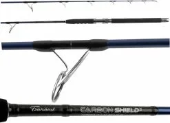 Tsunami Carbon Shield II Boat Spinning Rods are designed with ALPS Guides. Premium Hypolon grips for maximum comfort. Made with feather light IM7 graphite blanks with D16 nanotech and unique carbon fiber design. D16 Nanotech blank technology consists of multi-directional layers of IM7 carbon fiber that have been injected with nano resin and wrapped in 8 different angles which evenly disperse flexural force in 16 directions. This combination provides an extremely lightweight blank that resists twist and adds hoop strength. These rods make casting to, hooking, and fighting big fish as easy as it gets. Great choice whether you are jigging Tuna in the Northeast or battling Grouper down South.